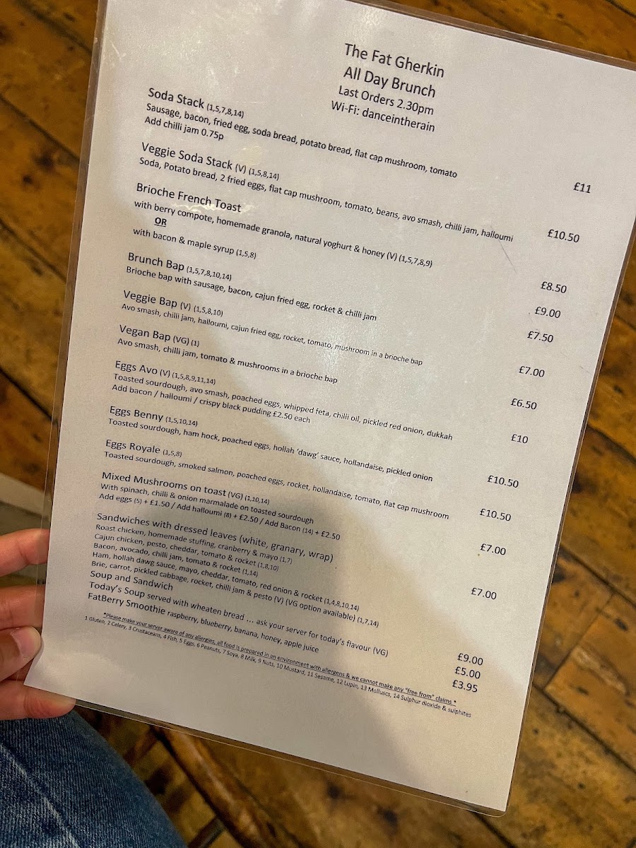 The Fat Gherkin offers a menu that reflects its inviting café and breakfast restaurant vibe, focusing on simple, approachable dishes that suit a relaxed dining experience. Whether you’re dropping in for a leisurely weekend brunch or a casual lunch, the options are designed to feel both familiar and satisfying.